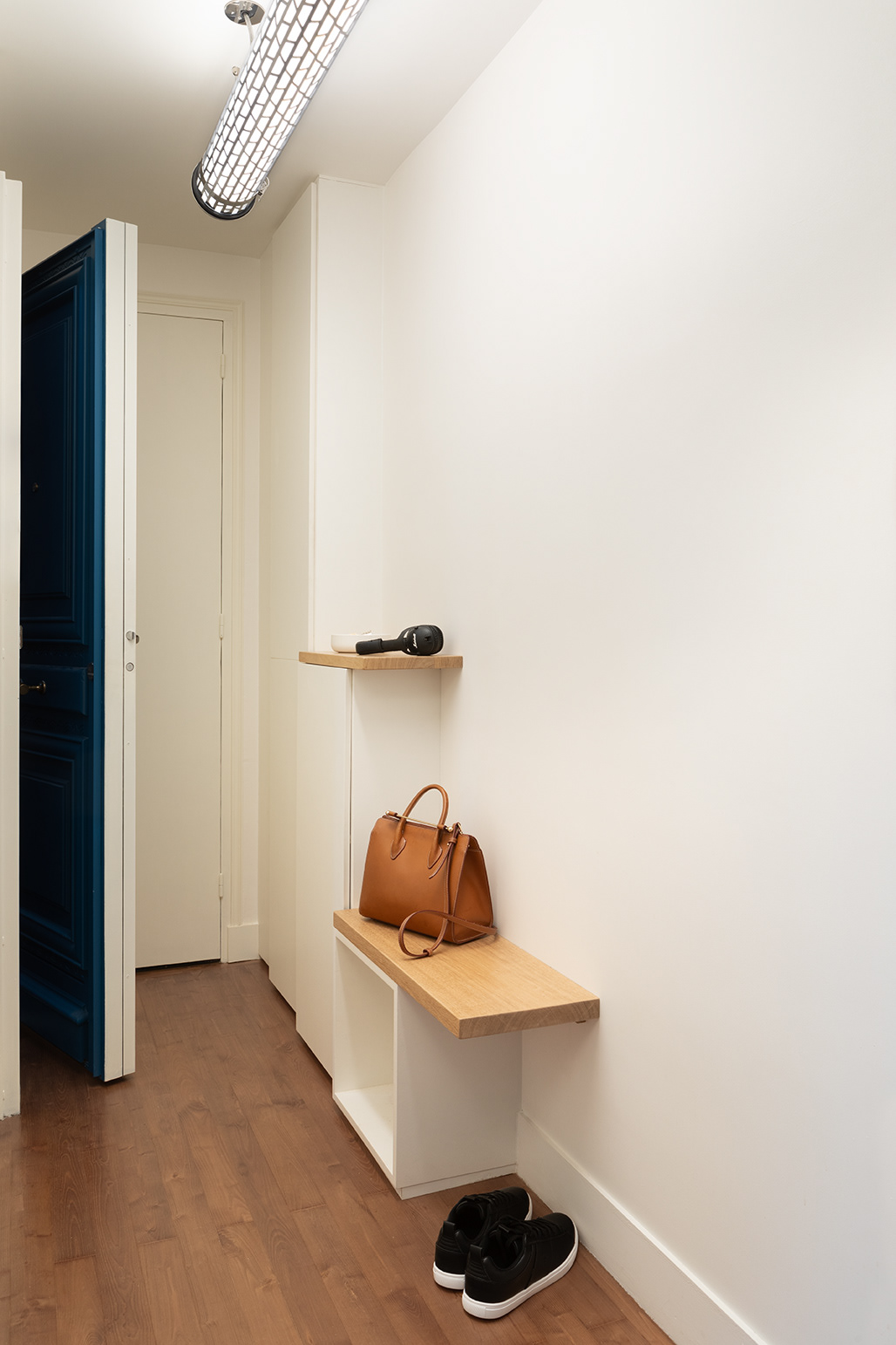 My design intention was to integrate these cold-looking pieces of furniture into a welcoming and pleasant atmosphere of home.